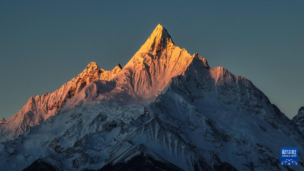 2026年1月1日,云南梅里雪山在清晨的阳光下呈现出“日照金山”景象。(李春雷 摄)