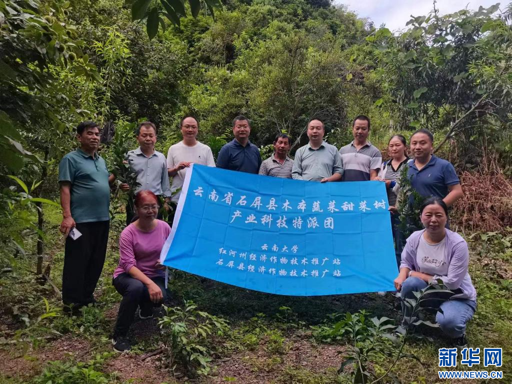 云南大学木本蔬菜保护与开发利用团队到田间指导矮化增产技术。(云南大学供图)