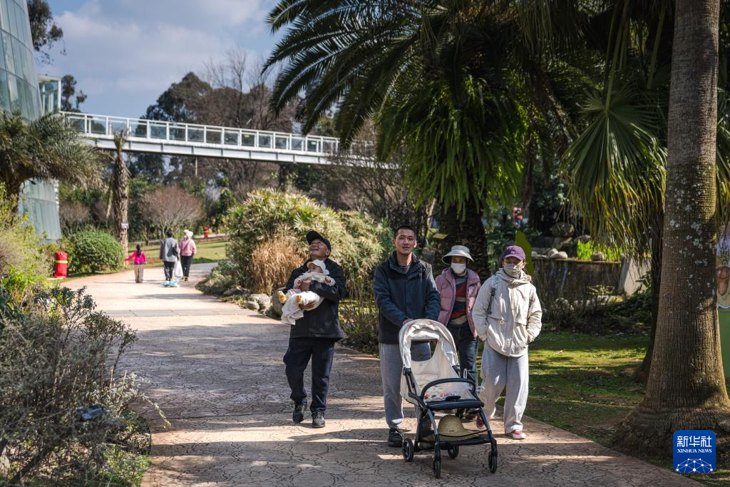 1月10日,云南昆明天气晴好,市民游客在冬日的暖阳中漫步于昆明植物园,领略自然美景,尽享惬意悠闲的周末时光。