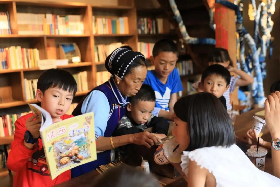 孩子们在公益书屋读书。图源:云南网