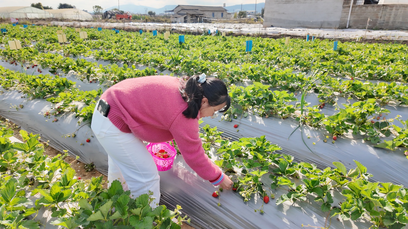 冬日的普洱市景谷傣族彝族自治县永平镇,阳光和煦,公路沿线的露天草莓园里一派繁忙景象。鲜红饱满的果实挂满枝头,游客们提着果篮穿梭其间,采摘、品尝、拍照,欢声笑语与果香交织在一起,构成一幅“以农促旅、以旅兴农”的生动画卷。