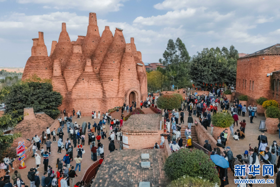 东风韵度假区内游客如织(资料图)。新华网发(弥勒市委宣传部供图)