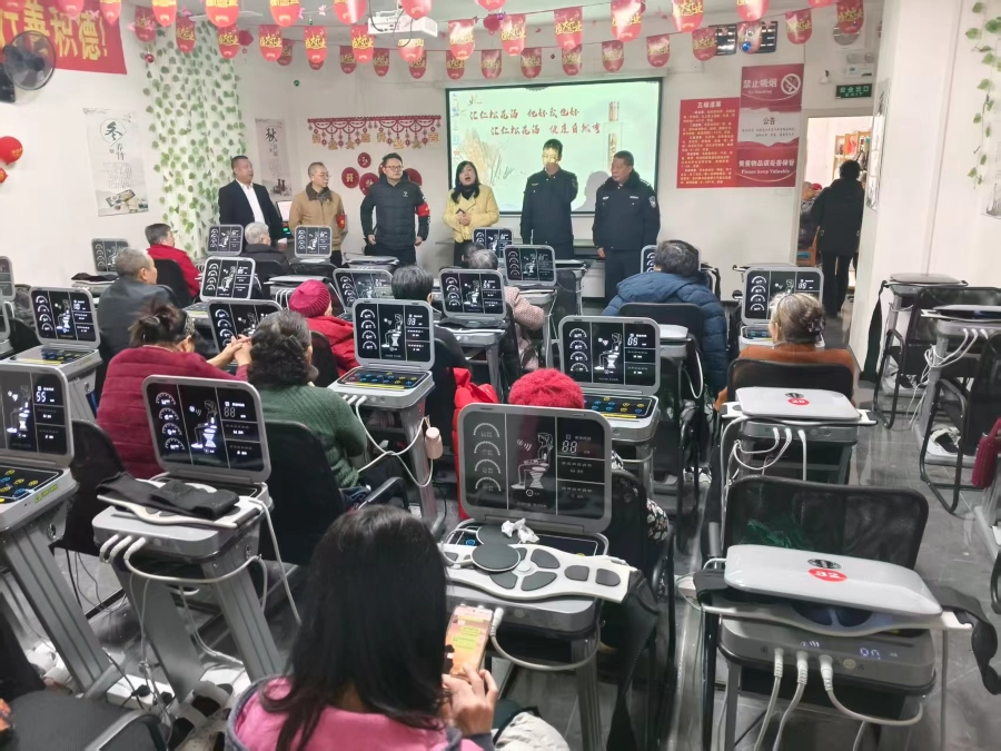 为守护群众健康权益,水富市公安局各派出所对辖区健康理疗机构开展专项检查,并向老年人普及防骗知识。民辅警现场查验资质、核对宣传资料,确保理疗服务合规经营;核查健康理疗机构是否存在夸大产品功效、虚假宣传“包治百病”等违法行为,严厉打击以“免费体验”“专家义诊”为幌子诱导消费的套路。
