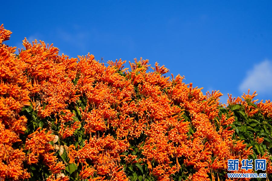 盛开的炮仗花(1月19日摄)。新华网发(段宗智 摄)