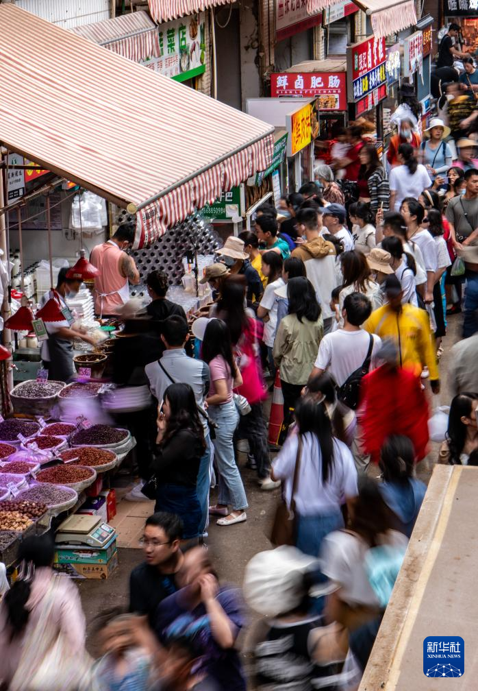 旅游热度持续上升的背后,是农贸市场的精准转型升级。“我们将传统市井空间升级,适配市民游客的新消费需求。”大观篆新农贸市场品牌运营负责人陆光福介绍,市场历经多次改造,既守住农贸市场的民生底色,又打造集中展示云南风物的景区,让文旅融合成为激活消费的新动能。