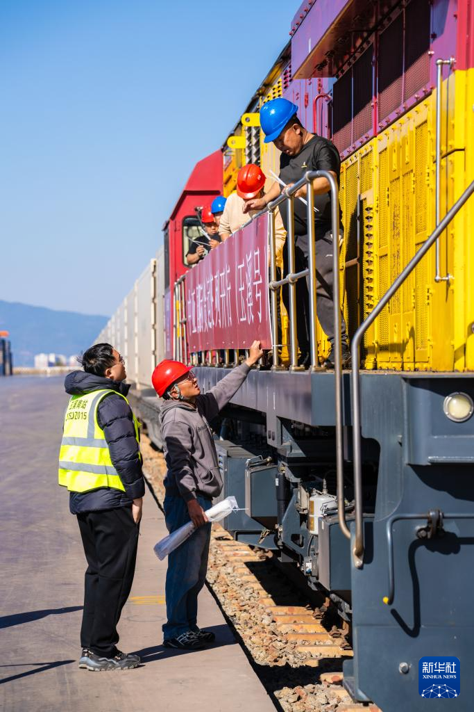 1月26日,工作人员在云南玉溪研和站为中老铁路中亚国际货运班列发车做准备。新华社记者 高咏薇 摄