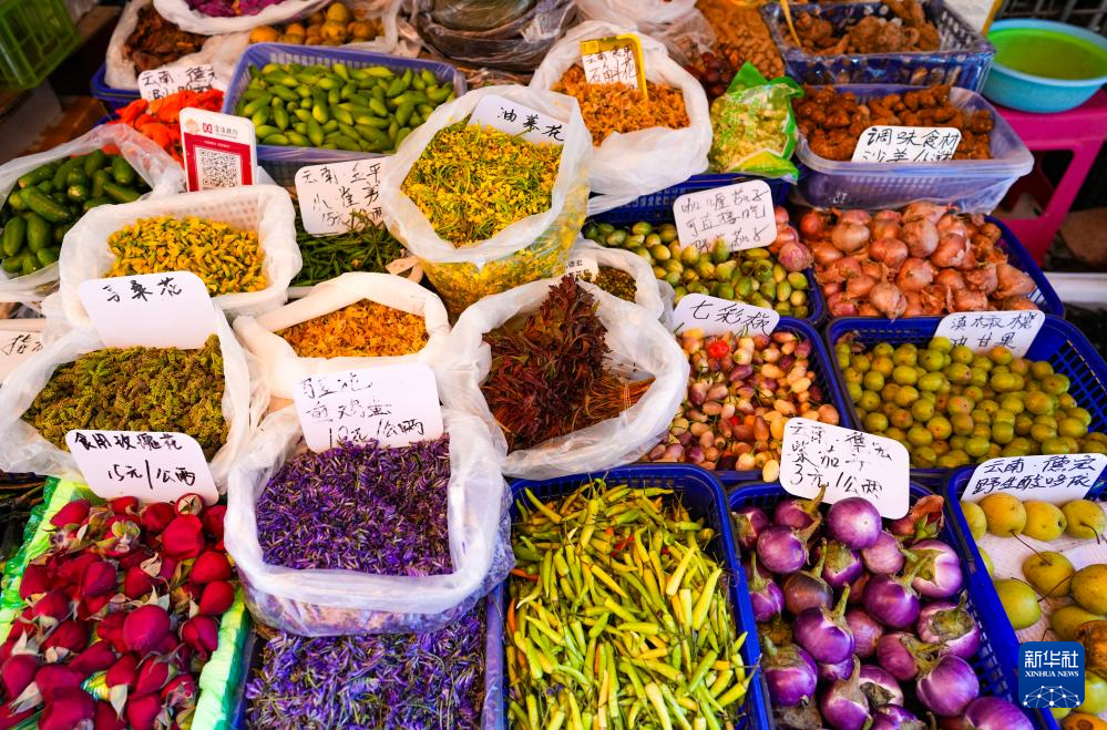 这是1月27日在昆明大观篆新农贸市场内拍摄的云南特色食材。新华社记者 陈欣波 摄