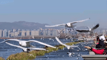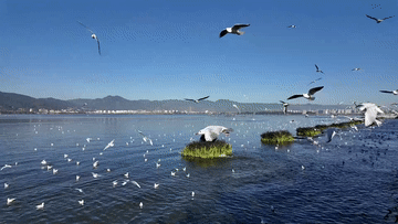 每逢冬季,在云南省昆明市滇池畔的海埂大坝、海洪湿地等地,红嘴鸥成群结队在空中翩翩起舞,成为春城昆明的靓丽风景。