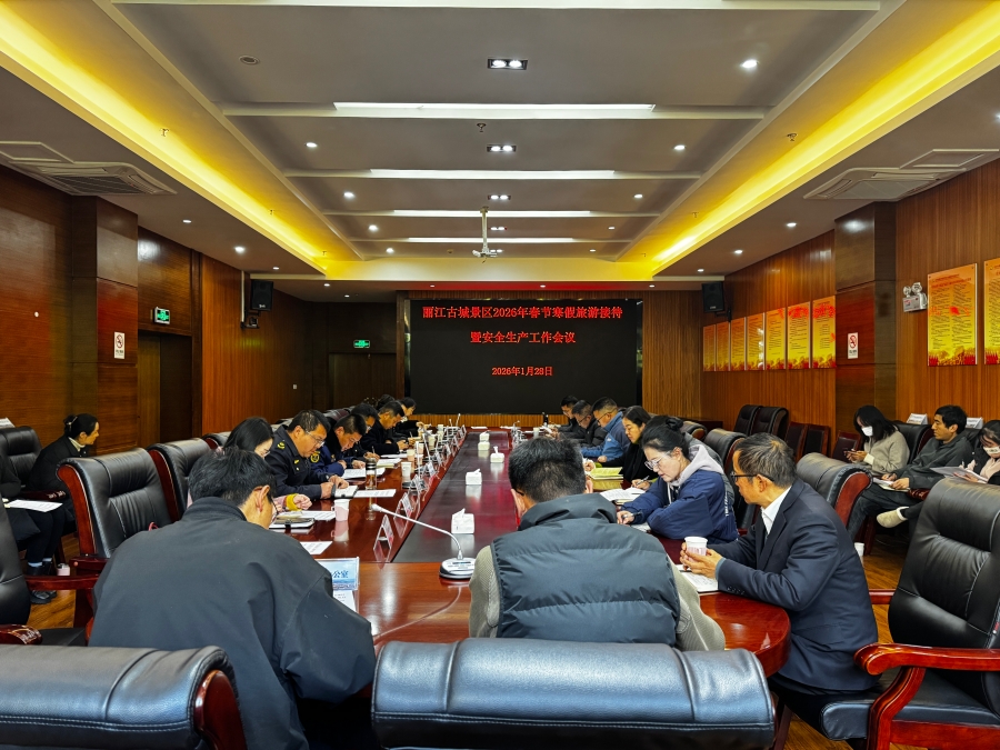 1月28日,云南省丽江古城景区举行2026年春节寒假旅游接待暨安全生产工作会议,全面部署春节、寒假期间旅游接待服务、旅游市场整治和安全生产各项工作,确保广大游客和市民度过一个安全、有序、欢乐、祥和的假期。