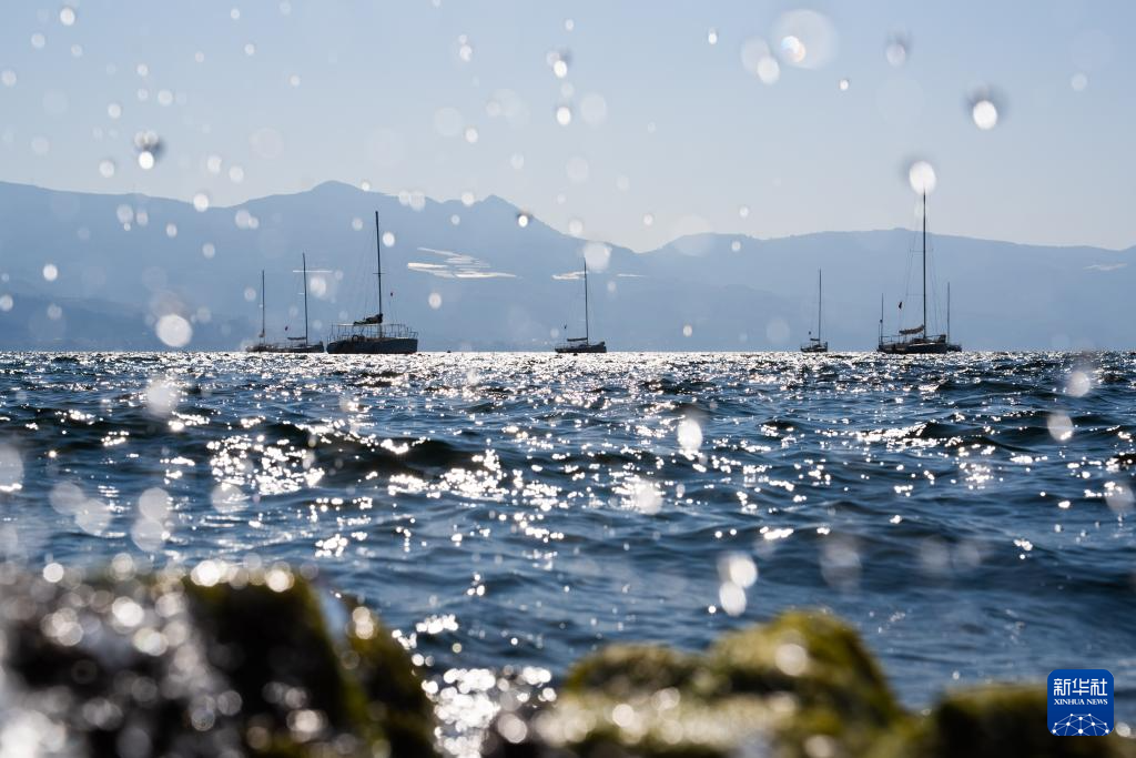 冬日抚仙湖碧波荡漾,风光宜人,吸引不少游客前来游览。