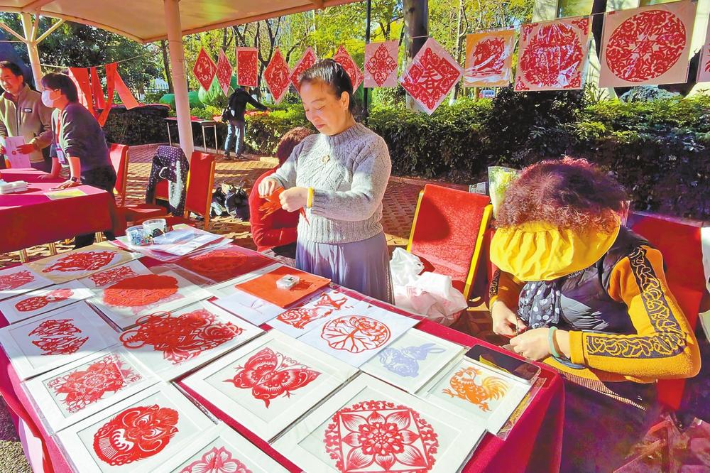 图为市民体验剪纸艺术魅力。记者 刘薇薇 摄