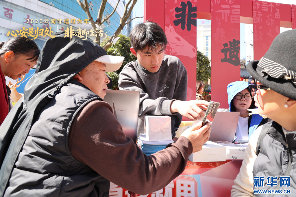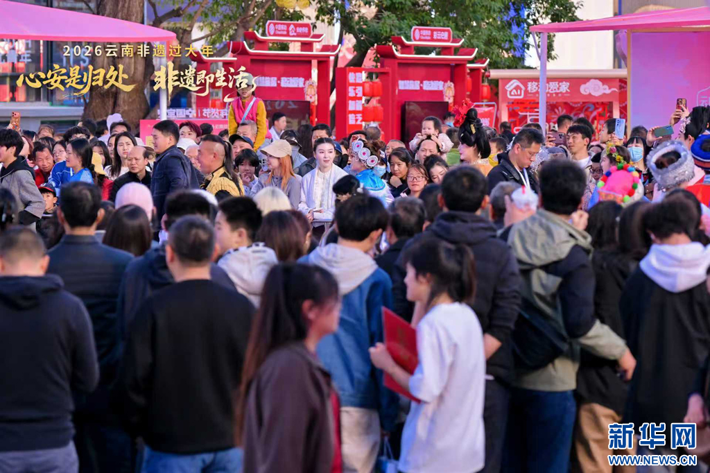“心安是归处 非遗即生活”——2026云南非遗过大年活动于1月30日在昆明市五华区南屏街西口启幕,“桃花流水——非遗展演大观园” “兰泽芳晴——非遗康养大观园” “市井百工——淘宝中国宝贝·非遗年货大观园”“心安驿居——乡愁旅居大观园”四大“大观园”同步亮相。(完)
