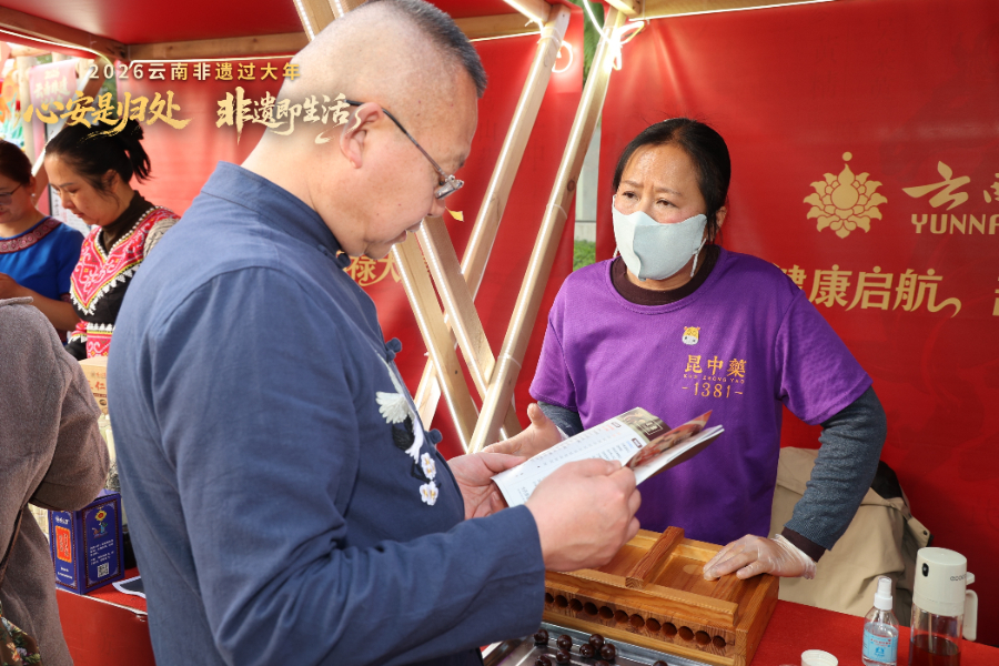 新春佳节即将到来之际,一场融合非遗智慧与康养之道的文化盛宴在昆明市南屏街精彩呈现。在“2026云南非遗过大年”活动中,云南省中医医院(云南中医药大学第一附属医院)与云南白药集团股份有限公司(以下简称“云南白药集团”)、云南省民族民间医药学会携手打造了“兰泽芳晴—非遗康养大观园”,以传统医药非遗为核心,构建起传统与现代交融的健康体验空间。