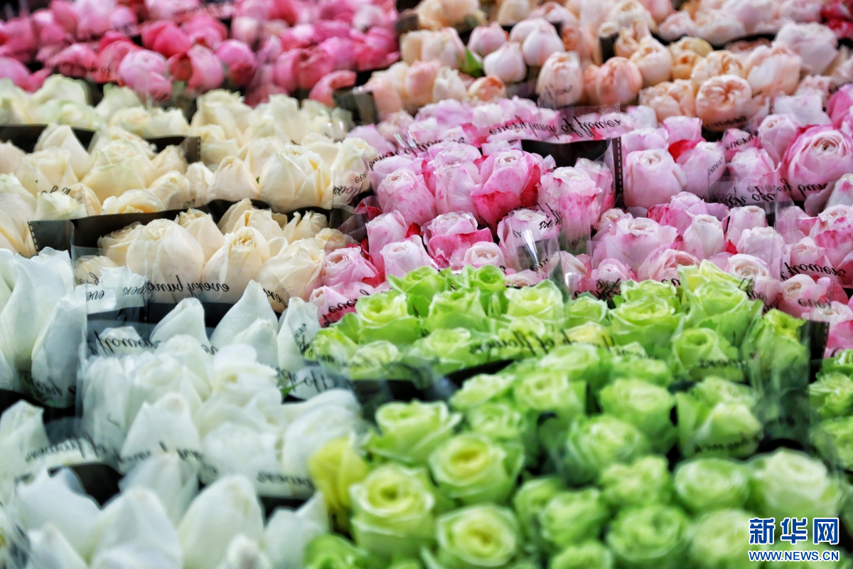 2月8日,人们在云南昆明斗南花卉市场内选购鲜花。新华网发(薛莹莹 摄)