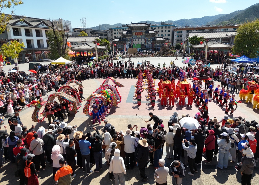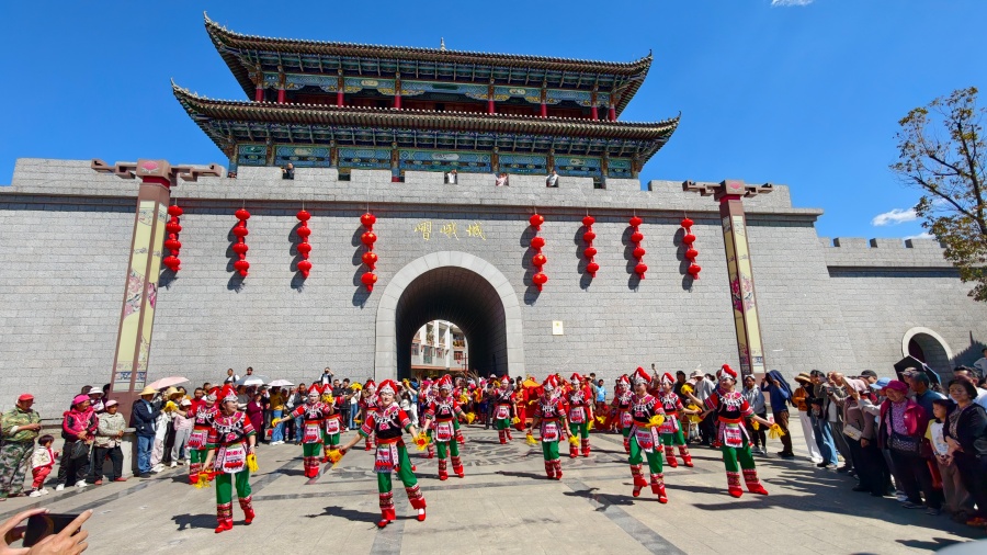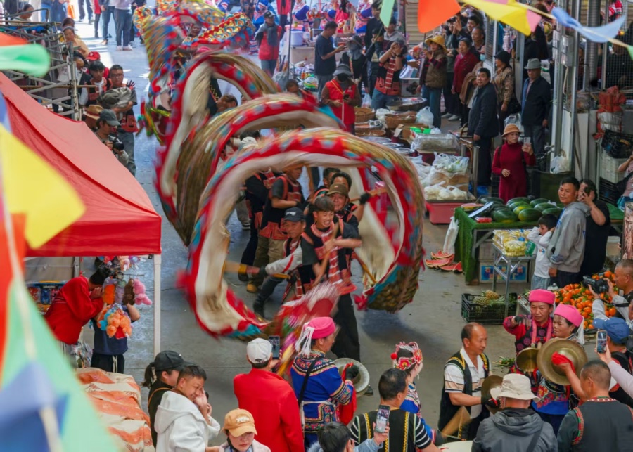 “开新街”指春节过后的第一个街子天,由于民众忙于走亲访友、商户尚未完全营业,为了让市场重新热闹起来、繁荣集镇经济,当地便以耍龙灯、舞狮、花鼓舞等丰富多彩的民俗活动“闹街开市”,以此祈愿新的一年商贸兴旺、生活红火。这一传统已成为峨山独具特色的文化符号。