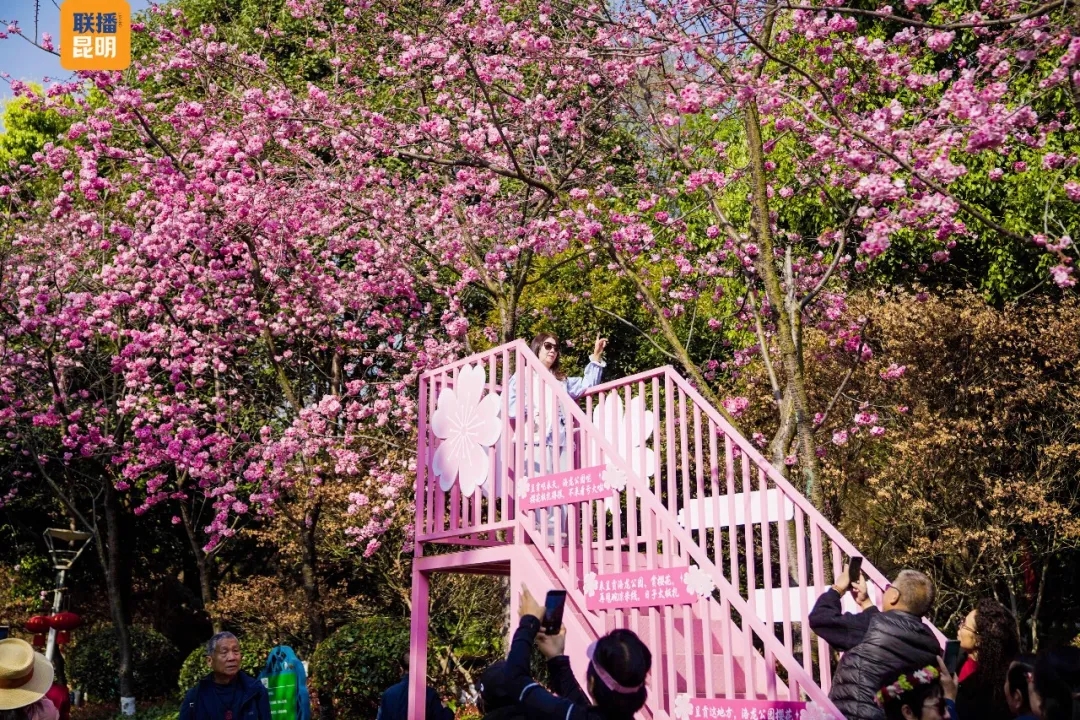 以“繁花呈贡 ‘樱’你而美”为主题的2026洛龙公园第三届樱花节3月1日在昆明市呈贡区洛龙公园热闹开幕,丰富多彩的活动将贯穿三月,让游客和市民随时可赏可玩。