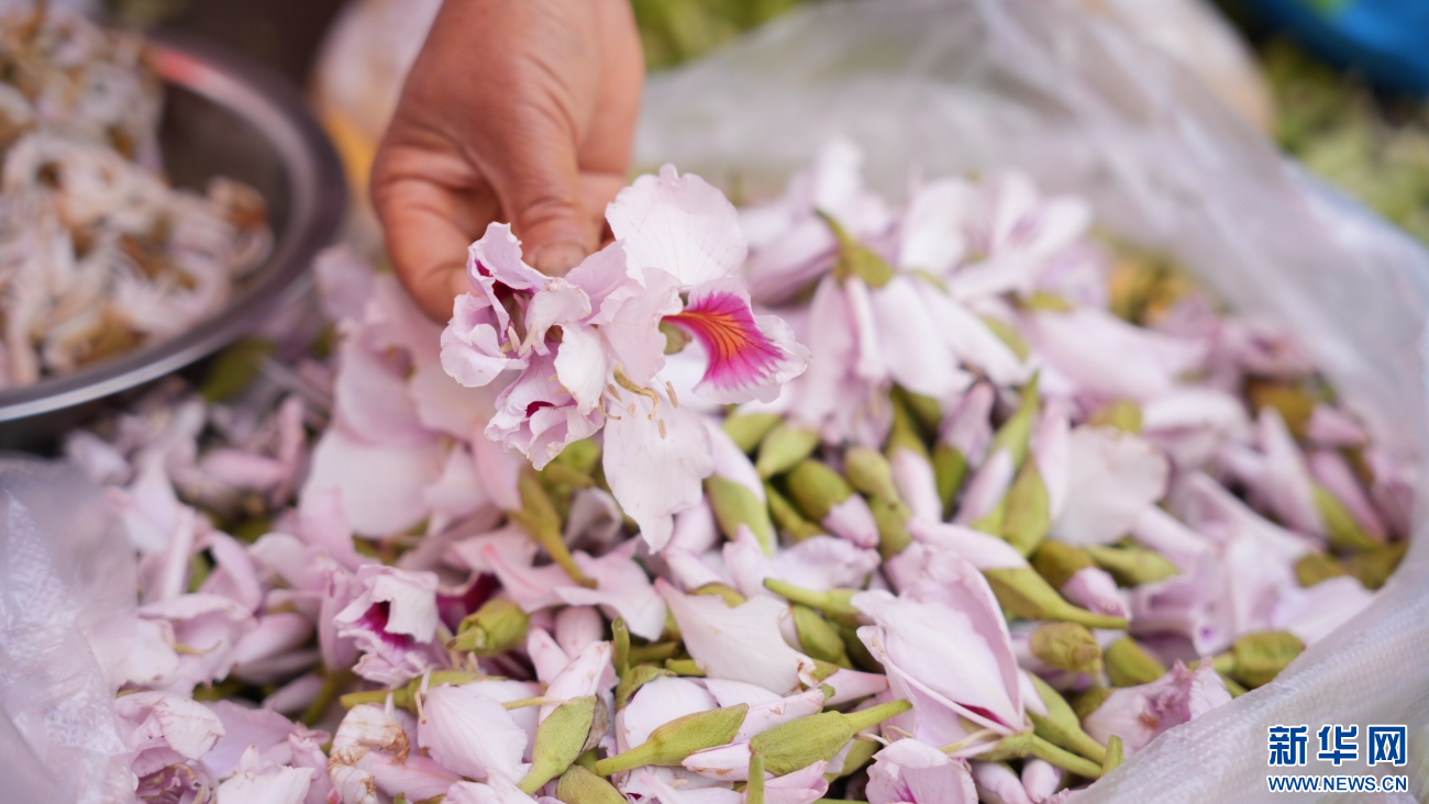 2月28日,人们在云南省普洱市镇沅县的集市上选购玉荷花。新华网发(王杨静 摄)
