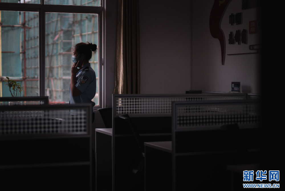 女子侦查组成员正在打电话核实案件(资料图)。新华网发(供图)