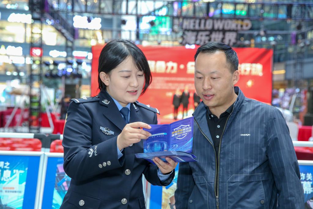 民警向市民宣讲反诈知识。(陈磊 摄)