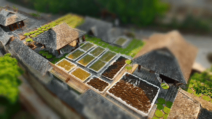移轴镜头下 屋顶的晒场 劳作的茶农与传统民居