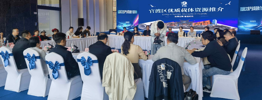 当天下午,官渡区文旅产业项目推介会在数据产业园会议厅召开。官渡区委统战部领导在致辞中对侨商联合会一行表示热烈欢迎,官渡区商投局招商中心围绕官渡区营商环境、优质楼宇资源及文旅项目进行推介,为侨商投资兴业提供清晰的政策指引。