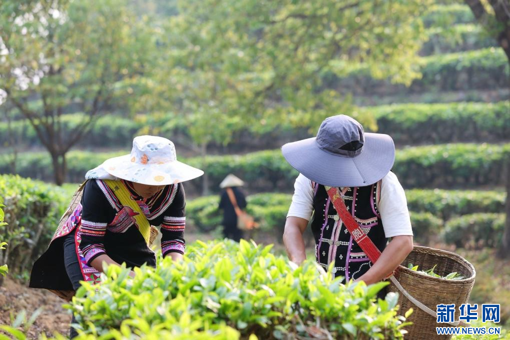 茶农采摘春茶(3月28日摄)。新华网发