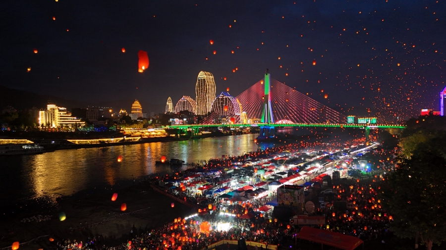 地点:景洪市泼水广场澜沧江边两岸步行道、澜沧江边观礼台、告庄西双景(星光夜市、凤起湄澜六国广场)、西双版纳热带花卉园在树下集市等