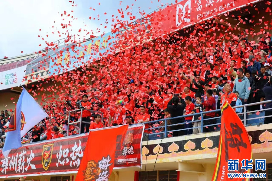 滇超联赛,楚雄队主场的“红色海洋”(3月22日摄)。新华网发(赛事组 供图)
