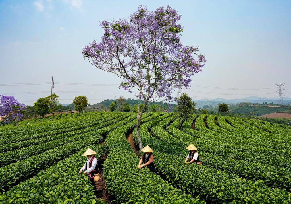 近日,云南省普洱市思茅区迎来春茶采摘季。茶农忙碌在层叠起伏的茶山间,绘就一幅春日美好画卷。