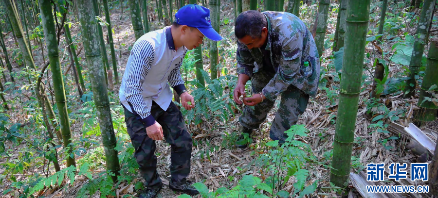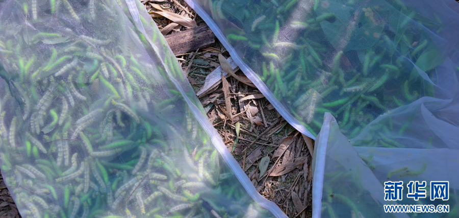4月7日,马鞍底乡组织护林员对蝴蝶幼虫进行保护性迁移。新华网发(阮纯 摄)