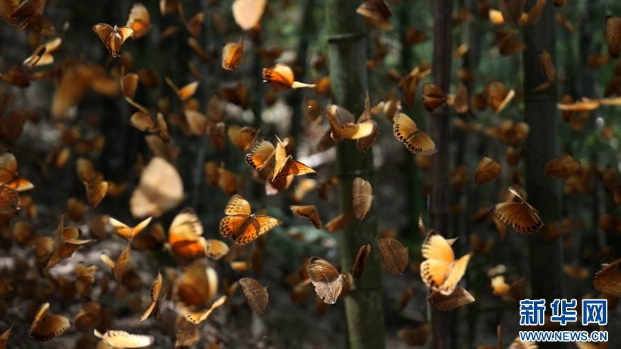 每年5至6月,蝴蝶谷内的箭环蝶幼虫会在短时间内集中羽化成蝶,它们在山林间、小溪旁、村落中大量聚集,翩翩起舞、穿梭嬉戏,形成“漫天蝶舞”的独特生态景观。(冯燕 阮纯 张育宁)